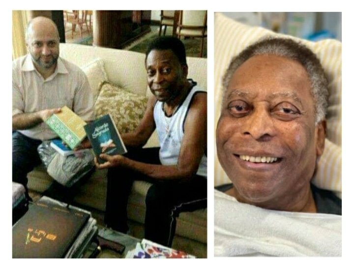 وأضاف حكيم ” قبل مرضه، قام الإمام علي عبدوني، رئيس الندوة العالمية للشباب الإسلامي في البرازيل، بزيارة بيليه في منزله وأهداه الترجمة البرتغالية للقرآن الكريم، بالإضافة إلى العديد من الكتب التي تعرف بالإسلام”.