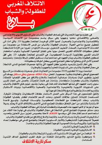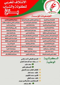 أعلنت السكرتارية الوطنية، للإئتلاف المغربي للطفولة والشباب، عند ميلاد إئتلافها الجمعوي الوطني والمستقل، المُكوّن من 42 جمعية وطنية، مشتغلة بكل الإهتمامات في ميدان الطفولة بالمغرب، بعد الإجتماع الذي عرفه هذا النسيج الجمعوي، بممثلي كل الجمعيات الوطنية المشتغلة بمجال الطفولة والشباب،يوم الجمعة 2 أكتوبر الجاري.