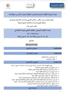 تحت الرعاية السامية لصاحب الجلالة الملك محمد السادس نصره الله، تنظم جامعة ابن زهر بأكادير بشراكة مع المعهد الاروبي للدراسات الفلسفية ببروكسيل والمركز المغربي للدراسات والأبحاث التربوية ندوة دولية في موضوع: “محمد المختار السوسي وجهوده الإصلاحية”.