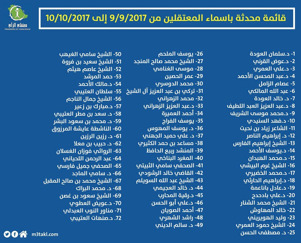نشر حساب “معتقلي الرأي” على تويتر لائحة جديدة محينة تضم أسماء المعتقلين منذ بداية حملة الاعتقالات إلى يوم 10 أكتوبر الجاري، جاءت كالتالي: