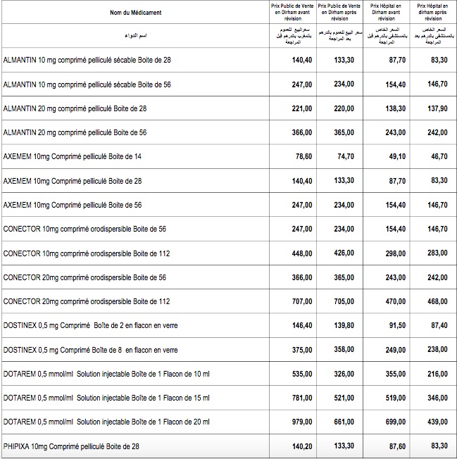 وفي ما يلي لائحة الأدوية التي شمل التخفيض أسعارها: