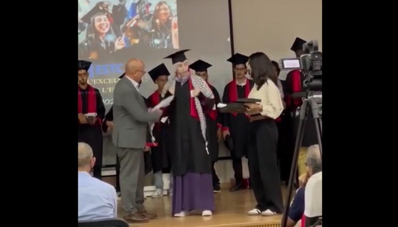 وقالت النقابة في بلاغها ” في وقت تشهد فيه الجامعات عبر العالم حراكا عارما مساندا لكفاح الشعب الفلسطيني مطالبا بوقف مجازر غزة في انسجام مع فضائها العلمي والأكاديمي الذي يسود فيه إعمال العقل الإنساني، شهدت رحاب المدرسة العليا للتكنولوجيا التابعة لجامعة الحسن الثاني عشية يوم السبت 13 يوليوز 2024 حدثا غريبا أثناء حفل تسليم الجوائز للطلبة المتفوقين، حيث تقدم عميد كلية العلوم بنمسيك بصفته ضيف شرف لتسليم جائزة الطالبة متفوقة، فلما تبين له أنها تحمل الكوفية، رفض تسليم الجائزة وقال للطالبة “أنها تمارس السياسة”. فانتفضت القاعة ضد هذا الفعل الشنيع وانسحب العميد من الحفل… ‼️”.