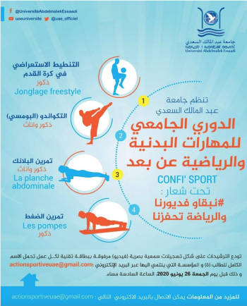 تم تتويج طلبة كلية العلوم القانونية والاقتصادية والاجتماعية بتطوان في الدوري الجامعي للمهارات البدنية والرياضية عن بعد والذي نظمته جامعة عبد الملك السعدي.