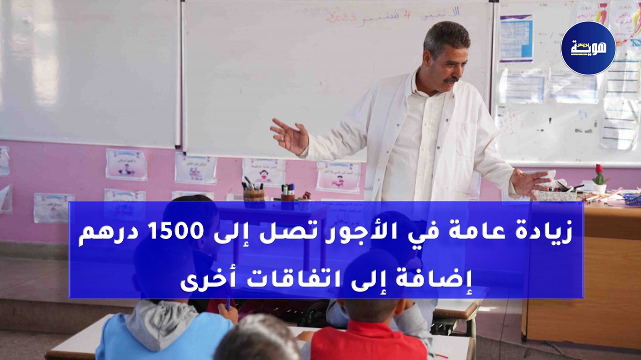 تم إقرار زيادة عامة في أجور كافة نساء ورجال التعليم بمختلف هيئاتهم ودرجاتهم، بمبلغ شهري صاف حدد في 1.500 درهم، يصرف على قسطين (فاتح يناير 2024 – فاتح يناير 2025).