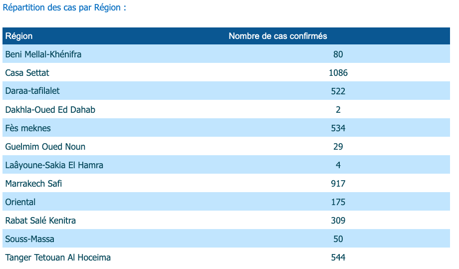 وتحتل جهة العيون الساقية الحمراء المرتبة الحادية عشر ب 4 حالات. وقد تم شفاء هاته الحالات ورجعت هذه الجهة لصفر حالة.