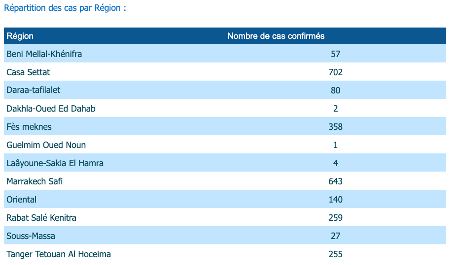 أن جهة الدار البيضاء سطات، في المرتبة الأولى بتسجيلها ل 702 حالة إصابة.