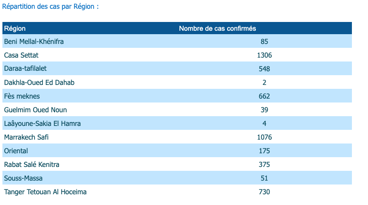 وأوضحت الوزارة حسب جدول يبين توزيع الحالات 5053 على جهات المملكة: