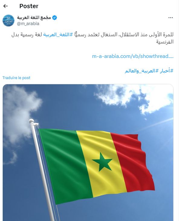 لكن رغم أن خبر اعتماد السنغال العربية العربية لغة رسمية يبقى غير صحيح، فإنه لا يخفي انتشار “لغة الضاد” في السنغال حيث تتمتع العربية بالفعل بمكانة خاصة، لكونها لغة وطنية، إلى جانب 21 لغة أخرى موجودة أيضاً في البلاد.