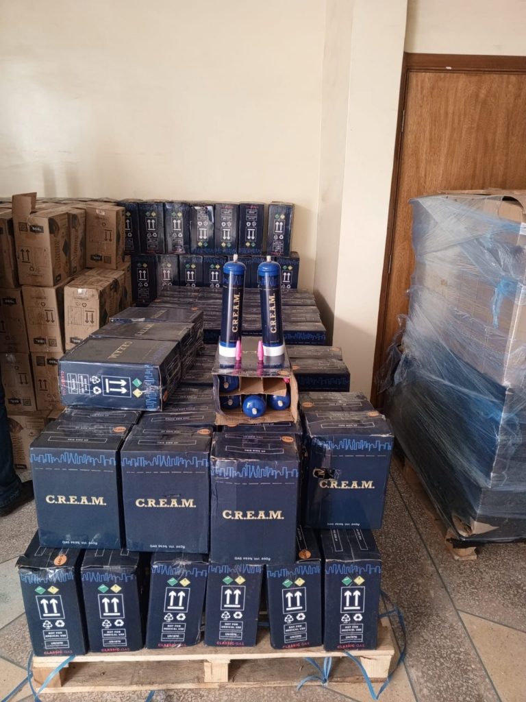 واللذين تم العثور بحوزتهما على ما مجموعه 100.280 قنينة من الحجم الصغير و22 أخرى من الحجم الكبير من غاز “بروتوكسيد الآزوت” المخدر،