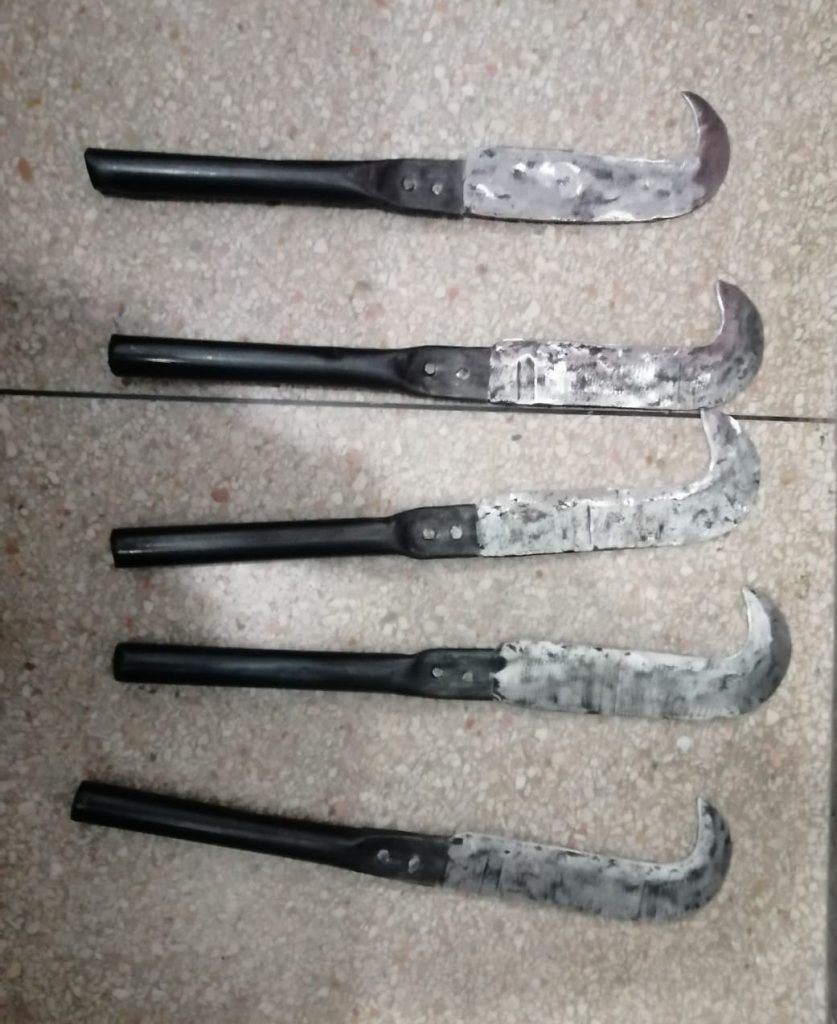 في حيازة مجموعة من الأسلحة البيضاء المصنوعة بشكل تقليدي بغرض استخدامها في ارتكاب جنايات وجنح ضد الأشخاص.