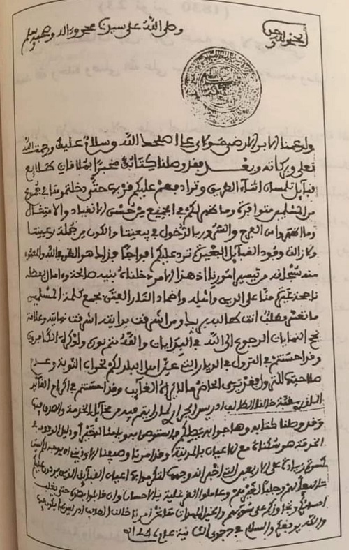 وأعلمكم أيضا أن خليفة سلطاننا المعظم المارشال بيجو، الضامن العافية في الوطن، قد أخبر السلطان أنه كاتبكم، وكاتب ابنكم بما فيه مصلحة الفريقين، وأن سبب الفتنة، هو وجود الحاج عبد القادر في الحدود، وأخبره أنه حذركم، فلا تظنوا أنه غير عالم بذلك، فقد علم كل الواقع في الوطن، وقد كتبنا لك كتابين أحدهما برا، والآخر بحرا، مضمنهما واحد، وقد حط خط يده أسفا.