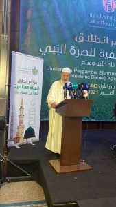 وقال أن “كل الأمة الإسلامية موجودة وممثلة، في المؤتمر، تحت راية نصرة نبي الإسلام صلى الله عليه وسلم”، كما “دعا إلى نصرة النبي باستحضار نماذج من السيرة كأنس بن مالك وحسان بن ثابت وأبي بكر الصديق.. الخ”.
