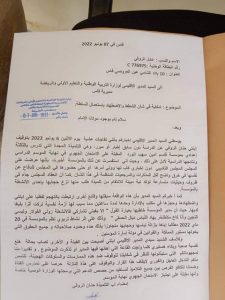 والتمس من المدير الإقليمي “التدخل العاجل والفوري لإيقاف هذا القرار والوقوف على هذة النازلة حرصا على تمدرس الفتاة وضمانا لتكافؤ الفرص بين جميع التلاميذ لتستفيد من حصص الدعم التي برمجتها الوزارة الوصية خاصة وأنها مقبلة على اجتياز الامتحان الجهوي نهاية الموسم”.