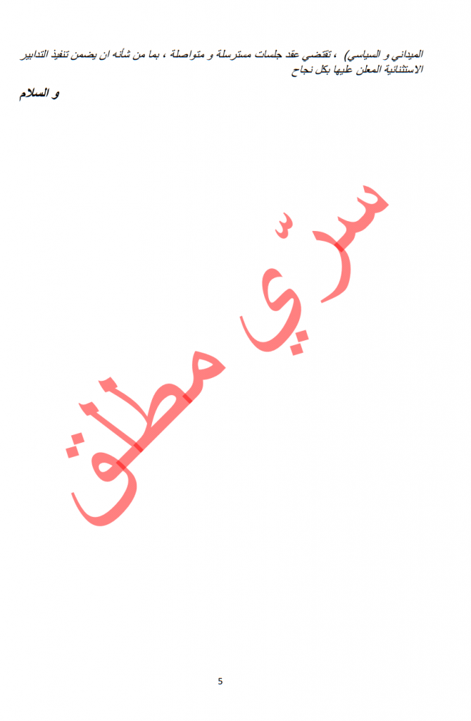ووصفت الوثيقة الوضع بأنه “حالة طوارئ وطنية” تنص على ما يلي: “في مثل هذه الحالة يكون دور رئيس الجمهورية أن يجمع كل السلطات في قبضته حتى يصبح مركز السلطة التي تمكنه حصريا من كل السلطات”.