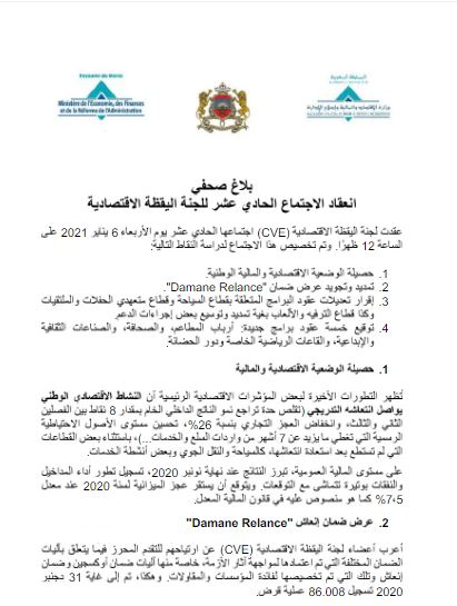 عقدت لجنة اليقظة الاقتصادية اجتماعها الحادي عشر اليوم الأربعاء 06 يناير وتم تخصيصه من أجل دراسة مجموعة من النقاط.