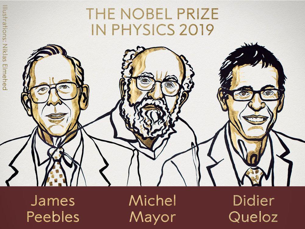 وذكرت لجنة نوبل أن أبحاث بيبلز قدمت أساسا لفهم تاريخ الكون من الانفجار الكبير وحتى اليوم، واكتشف الباحثان السويسريان في عام 1995 كوكبا خارج المجموعة الشمسية، يدور حول نجم شبيه بالشمس.