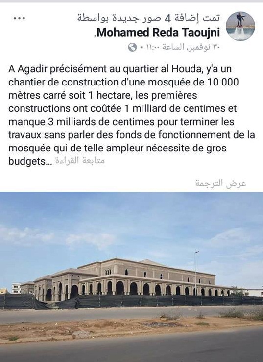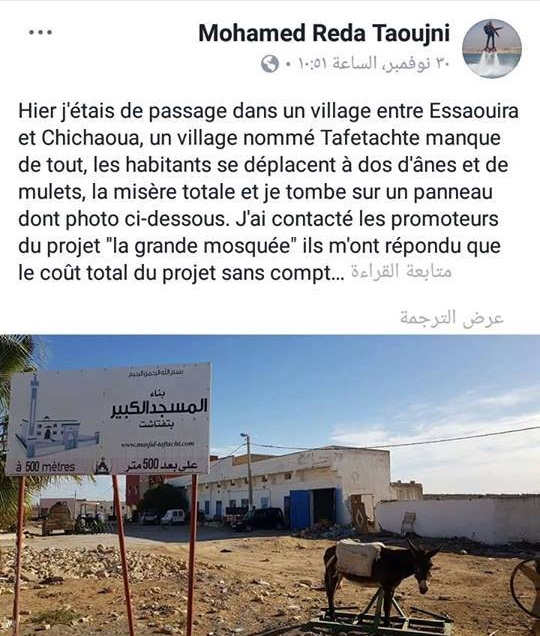 يذكر أنه راجت قبل أيام أخبار زائفة حول استنكار المواطنين لبناء مسجد كلفته باهظة بحي تدارت – انزا العليا، ومطالبتهم بتوقيف الأشغال وتحويل ميزانيته إلى مشاريع أخرى أكثر أهمية للسكان نفى مروج الخبر توفرها بالحي، الأمر الذي استنكره الساكنة رافضين أن يتحدث أي شخص باسمهم لأن مروج الخبر لا ينتمي للمنطقة، بالإضافة إلى أن له سوابق في التشغيب على بناء المساجد، والصور توضح ذلك: