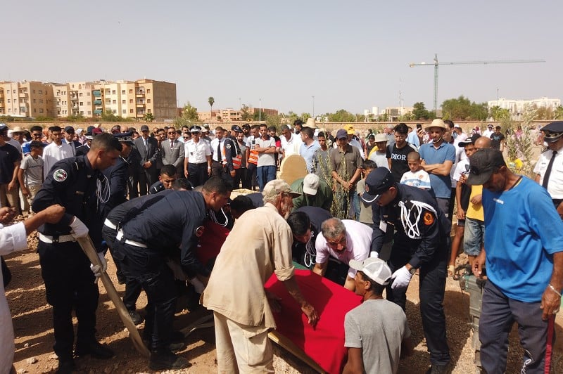 تم بالفقيه بن صالح، اليوم الأربعاء، تشييع جنازة شرطي كان يعمل بفرقة مكافحة العصابات بالدار البيضاء توفي جراء تعرضه لإصابة خطيرة خلال مزاولته لمهامهم الرسمية، إثر صدمه من طرف أحد مستعملي الطريق كان في حالة سكر متقدمة.