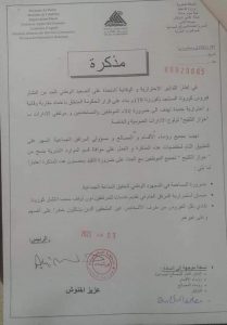 وجاء في المذكرة أنه “نهيب بجميع رؤساء الأقسام والمصالح ومسؤولي المرافق الجماعية السهر على التطبيق التام لمقتضيات هذه المذكرة والعمل على موافاة قسم الموارد البشرية بنسخ من “جواز التلقيح” لجميع الموظفين مع الحث على ضرورة التقيد بمضمون هذه المذكرة”.