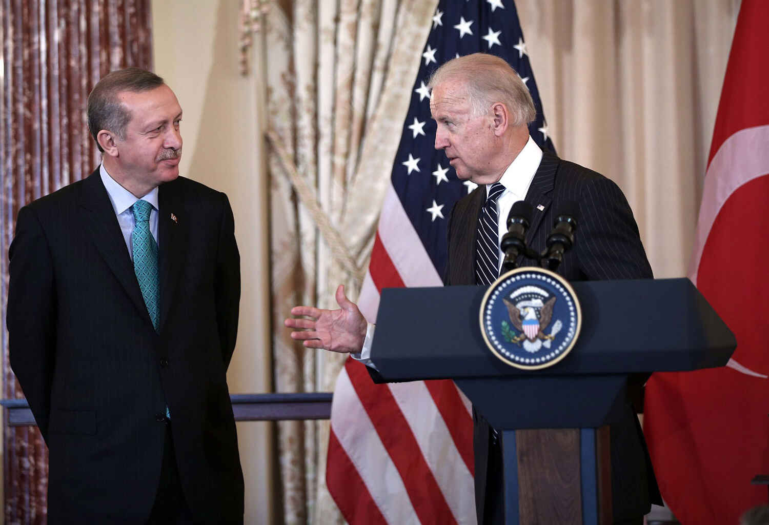 وأضاف جو بايدن في مقابلة مع صحيفة “نيويورك تايمز” الأمريكية، أنه “يجب علينا الآن التعامل مع أردوغان بطريقة مختلفة، وأن نعلن دعمنا للمعارضة بشكل واضح، وللشعب الكردي الذي يريد الدخول إلى البرلمان”، رغم أن حزب الشعوب الديمقراطي ذا الغالبية الكردية ممثل في البرلمان التركي.