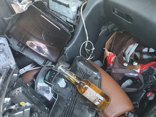 وقد كشفت صور التقطت من عين المكان أن إحدى السيارات كان يتواجد بداخلها قنينات خمر من أنواع مختلفة.