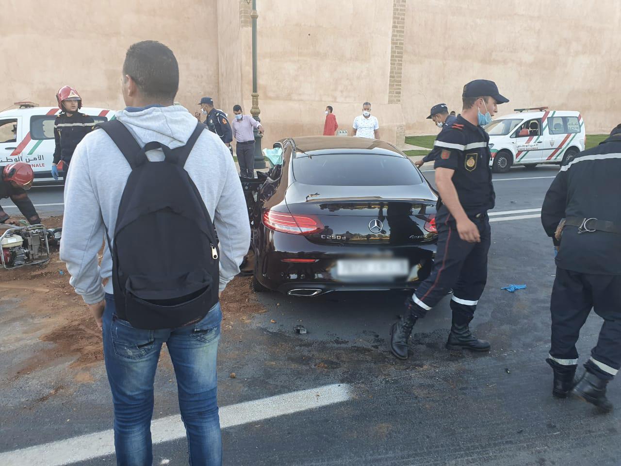 الحادث وقع بين سيارتي “بوش” و”مرسيديس” بالقرب من باب زعير بالرباط، ووفق معطيات أولية فقد كان أحد السائقين في حالة سكر.