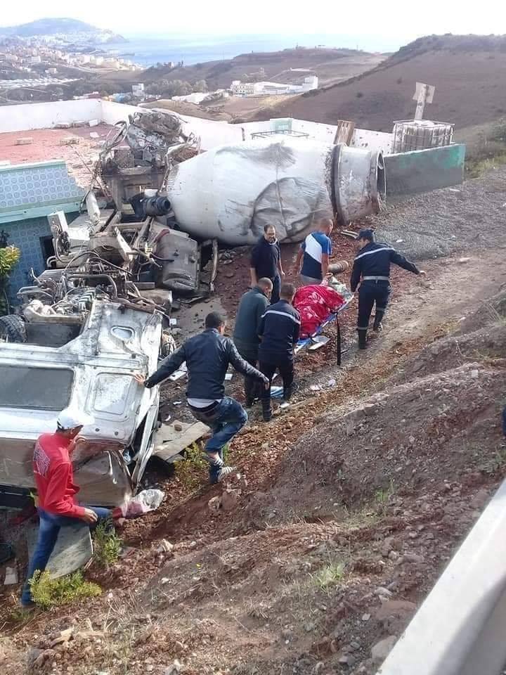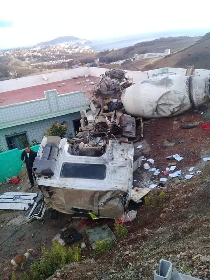 حادث مميت سائق شاحنة كبيرة يهوي في منحدر ويصطدم بمنزل قرب تطوان (صور)