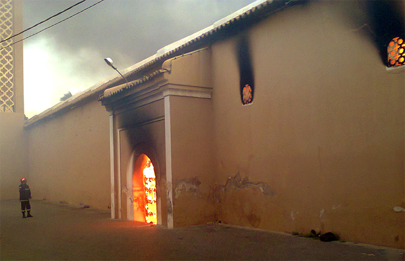 وحسب مصادر محلية، فإن مجموعة من المصلين تفاجؤوا عند محاولتهم دخول المسجد من أجل أداء صلاة الفجر، بكون الباب مغلق، مع تصاعد دخان أسود كثيف من تحته، ليقوموا باقتحام المكان على الفور.