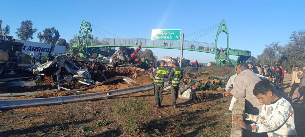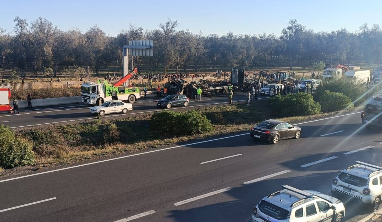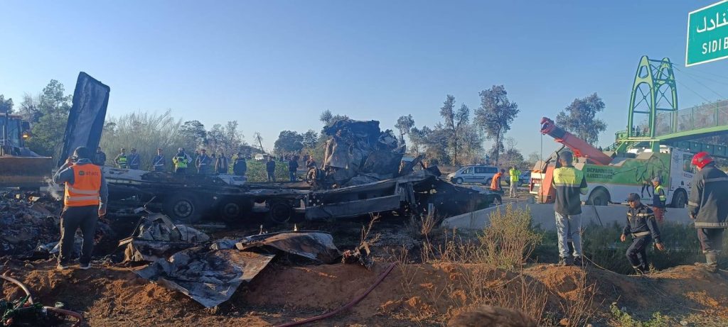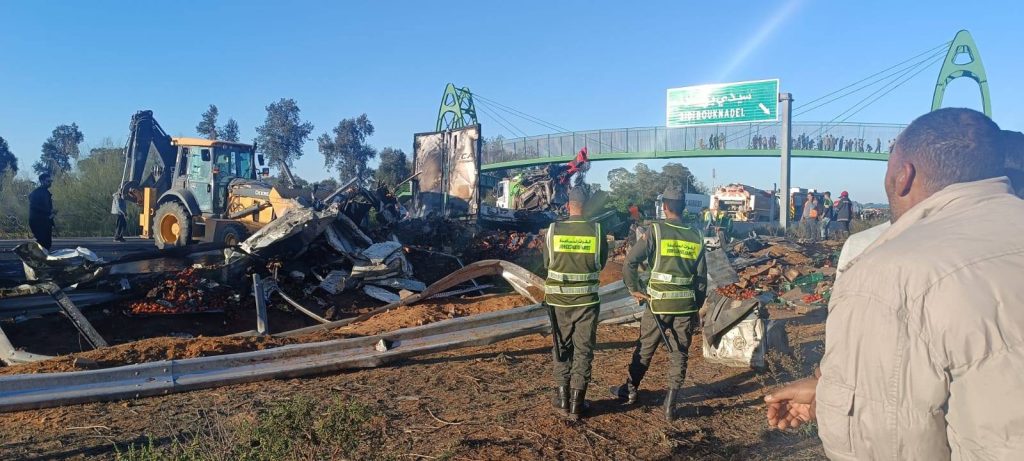 وفور إخطارها بالحادث هرعت مصالح الوقاية المدنية والدرك الملكي والسلطات المحلية إلى عين المكان لتأمين حركة المرور بالطريق المذكور، غير أن جهود الإنقاذ لم تفلح في إخراج سائق الشاحنة من العربة التي شبت فيها النيران بشكل كبير.