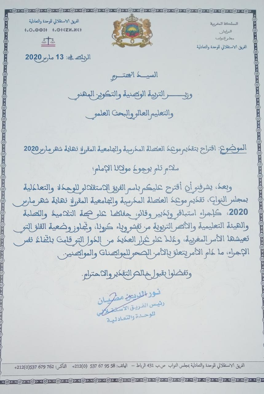 حزب الإستقلال يطالب وزارة التربية والتعليم بإغلاق جميع المؤسسات التعليمية والجامعية (وثيقة)