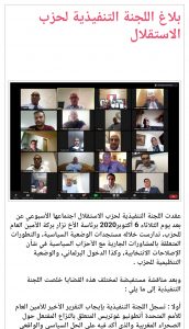 طالبت اللجنة التنفيذية لحزب الإستقلال، بوضع آليات زجرية للحد من إستعمال المال في إنتخابات 2021 القادمة، مع توفير كافة الشروط والضمانات الأساسية المتعلقة بنزاهة الإنتخابات، لحماية العملية الانتخابية من جميع التلاعبات مهما كان مصدرها.
