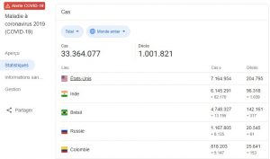 أما معدل الإصابات، فقد أظهرت إحصائيات منظمة الصحة العالمية، أن إجمالي عدد الإصابات بلغ 32.6 مليون مصاب عبر العالم حتى الآن. بينهم أكثر من 7 ملايين مصاب في أمريكا وحدها، وقرابة 6 ملايين مصاب في الهند.
