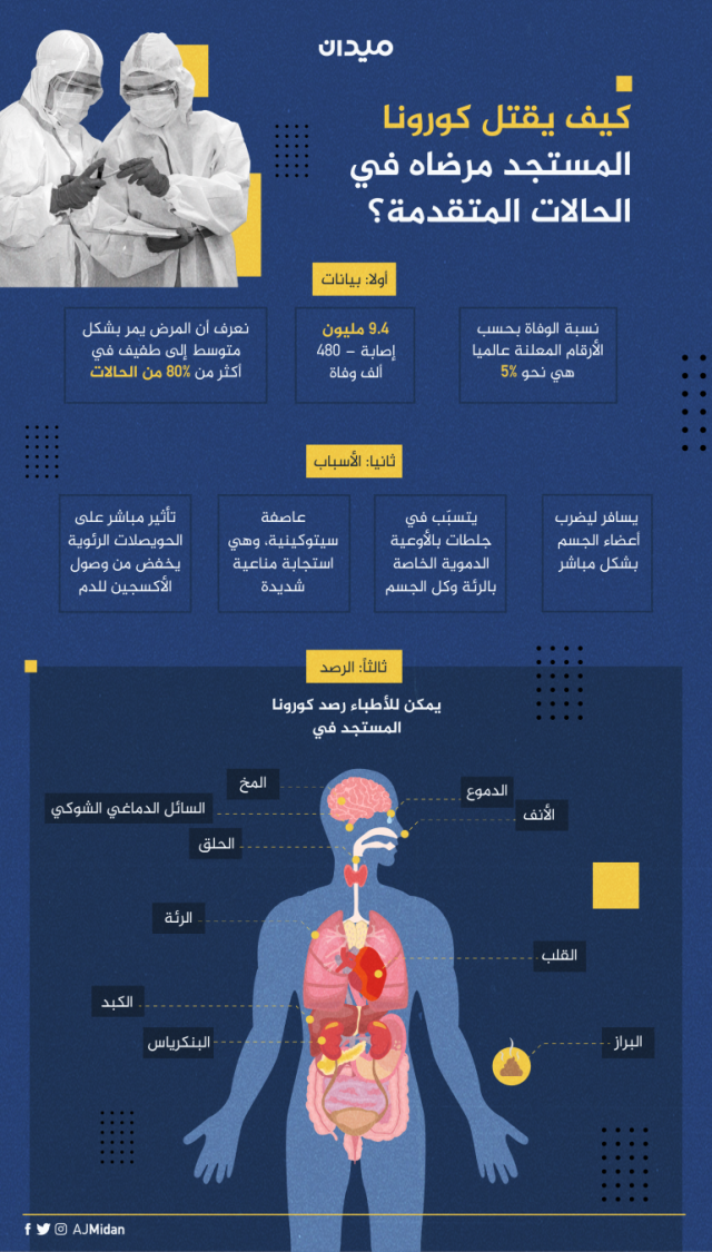 حينما نفحص المرضى، نجد كورونا المستجد في كل مكان بالجسم، في الحلق، الرئة، الدموع، البراز، الكلية، الكبد، البنكرياس، القلب، المخ، بل نجده في السائل الموجود حول الدماغ والحبل الشوكي! في الجانب الآخر ما زلنا لا نعرف إجابات الكثير عن الأسئلة الأساسية المتعلقة بالمرض، مثلا: ما طبيعة استجاباتنا المناعية له؟ كم عدد المصابين به؟ هل سيستمر في القدوم بشكل موسمي؟