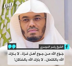 حقيقة اعتقال الشيخ ياسر الدوسري بسبب تغريدة تضامن فيها مع غزة