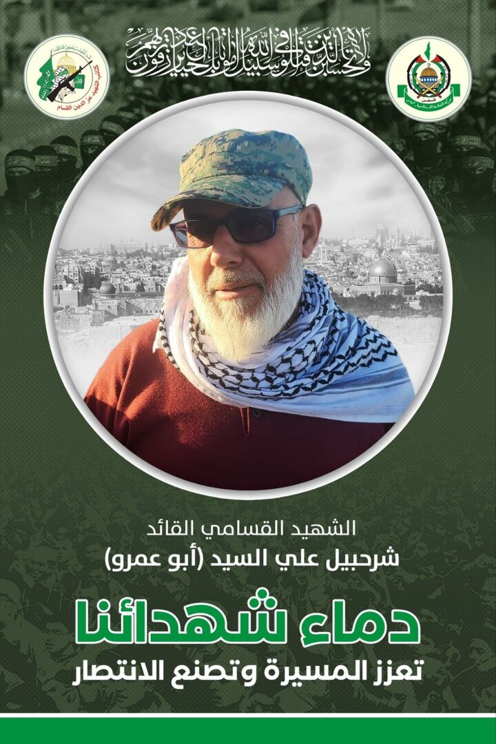 وقالت الحركة في بيان: “بمزيد من الفخر والاعتزاز، تزف كتائب الشهيد عز الدين القسام إلى شعبنا الفلسطيني وأمتنا العربية والإسلامية القائد المجاهد الشهيد شرحبيل علي السيد (أبو عمرو)، والذي ارتقى شهيدا في معركة طوفان الأقصى بعد استهدافه من قبل طائرات الاحتلال الإسرائيلي في البقاع الغربي اللبناني”.