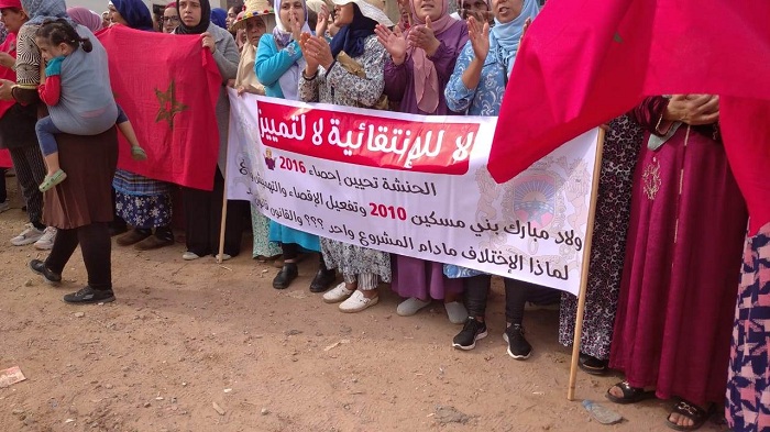 لا تزال عشرات الأسر تواصل احتجاجها ضد إقصائها من الاستفادة من السكن بعد انطلاق عملية التعويض والهدم بكل من اولاد امبارك وبني مسكين ببئر رامي المقاطعة السادسة بمدينة القنيطرة.