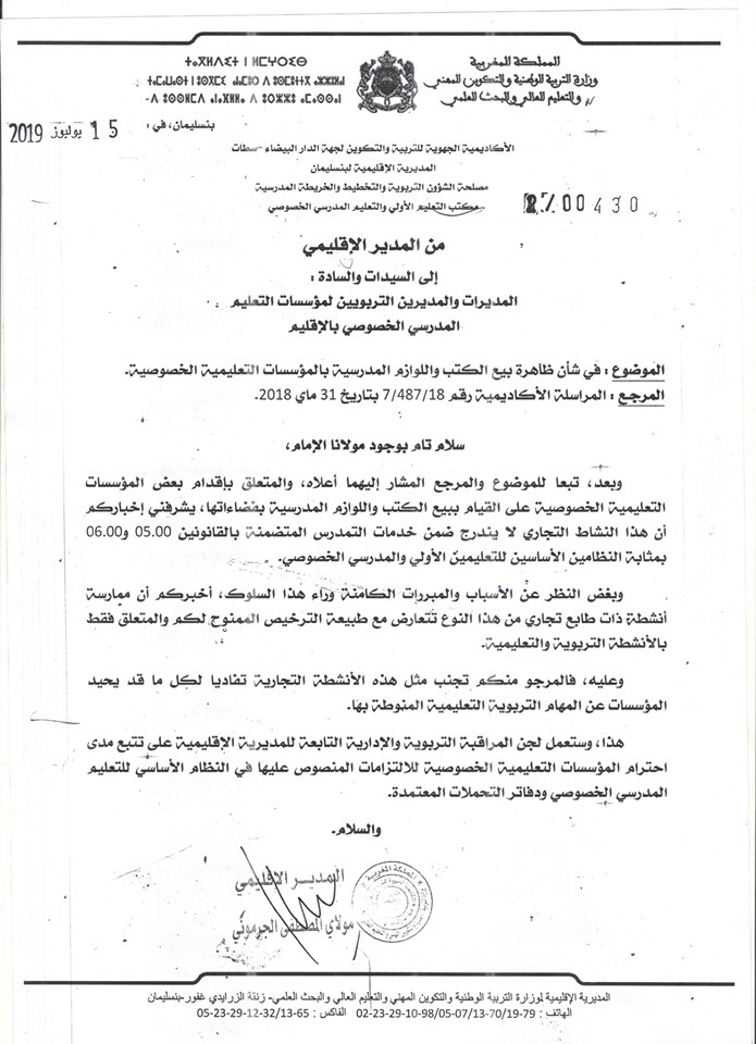 ضاربين، وفق جمعية الكتبيين المغاربة، بذلك المذكرة التي وجهت لهم من طرف المديرية الاقليمية و التي تمنع كل هذه الممارسات.