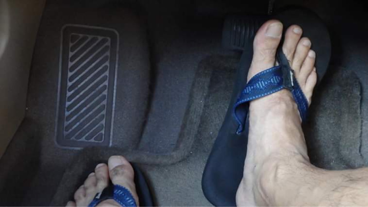 احذر القيادة بالصندل / الشبشب / العكب العالي (نهي شرعي وصحي) ، يوجد العديد من السائقين الذين يقومون بالقيادة بارتداء الشبشب أو يقودون دون ارتداء أي شيئ بأرجلهم، وذلك خصوصا في الرحلات الطويلة والسفر فهم يعتقدون أنها أسهل وأكثر راحة أثناء القيادة، ولكن ارتداء الأحذية المفتوحة هو أكثر شيئ غير آمن فيجب ارتداء الأحذية الثابتة المقفولة لأن غير ذلك يهدد سلامتك الأمنية، ومن الممكن أن يعرضك للحوادث، فارتداء الصنادل يؤثر على القيادة فلا يستطيع السائق الضغط على الفرامل بقوة