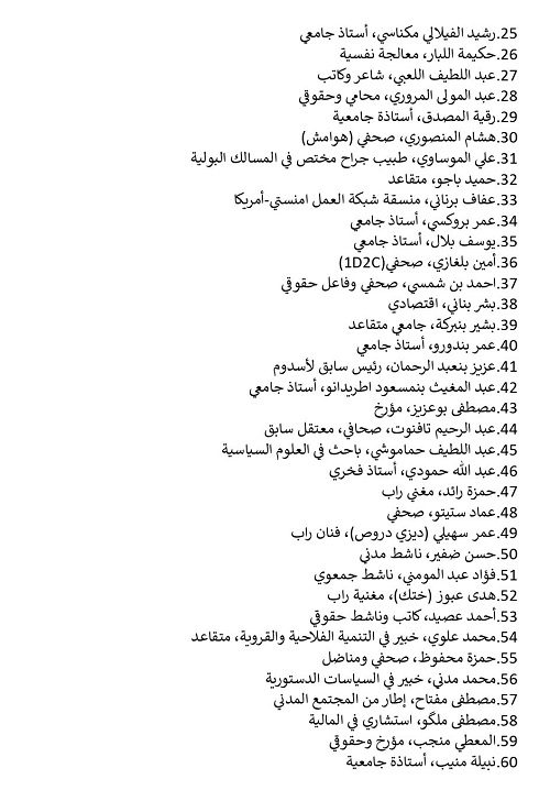 ومن التدابير التي طالب بها الموقعون، فتح حوار وطني يضمن تمثيلية الجميع بهدف مراجعة الأولويات الاقتصادية والاجتماعية للمغرب، وسبل تنفيذها.