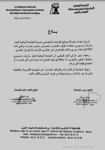 نفت الجامعة الوطنية لتجار وأرباب ومسيري محطات الوقود بالمغرب في بلاغ لها اليوم الجمعة، ما سمتها بالدعوات المفبركة بمواقع التواصل الاجتماعي المنسوبة لها. والداعية لخوض اضراب وطني لمدة ثلاثة أيام ابتداء من يوم الأحد 20 فبراير إلى غاية يوم الأربعاء 23 فبراير الجاري.