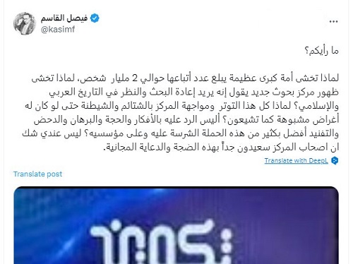 د.سامي عامري يرد على منشور فيصل القاسم حول “مركز تكوين”