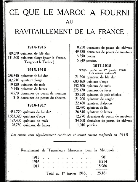وهذا الجدول يوضح ما كانت فرنسا تأخذه من ثروات المغرب: