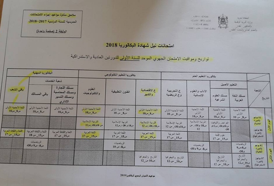 وهذه صور توضح البرمجة الكاملة للامتحان الجهوي والوطني لهذه السنة في جميع المواد والشعب: