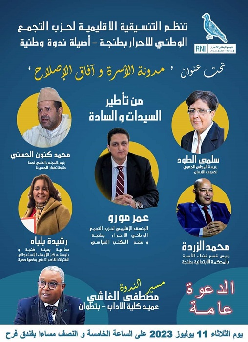 نظمت التنسيقية الإقليمية لحزب التجمع الوطني للأحرار بطنجة أس الثلاثاء 11 يوليوز 2023 ندوة بعنوان “مدونة الأسرة وآفاق الإصلاح”، وقد شارك في الندوة محمد كنون الحسني ذ، رئيس المجلس العلمي لجهة طنجة-تطوان-الحسيمة.