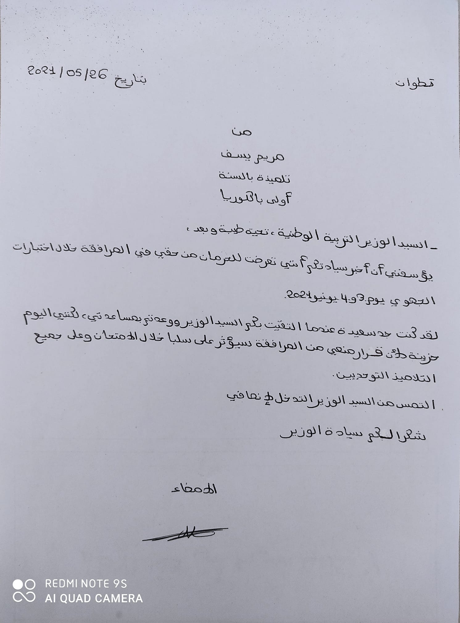 رسالة مؤثرة لأمزازي من تلميذة في وضعية إعاقة تثير تعاطف الرأي العام (الرسالة)