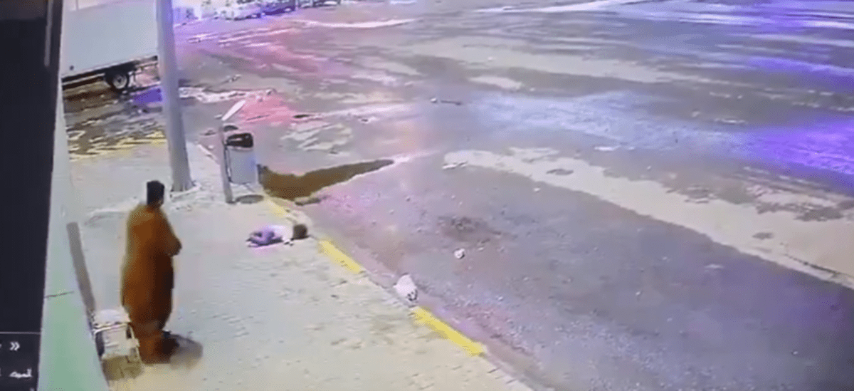 وظنَّ في البداية أن الطفلة قد فارقت الحياة، إلا أنه فوجئ بتنفسها عندما التقطها من الأرض، فطلب العون لاستدعاء سيارة إسعاف لتلقي العلاج”.
