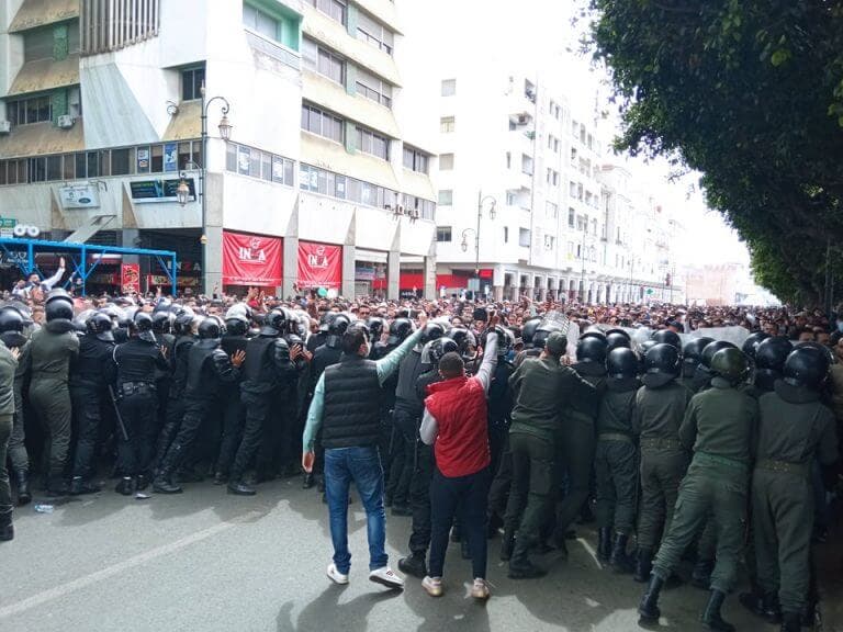 وقد عمدت قوات الأمن التي حضرت بشكل كبير ومكثف إلى منع الأساتذة من التقدم لمحيط مبنى البرلمان.