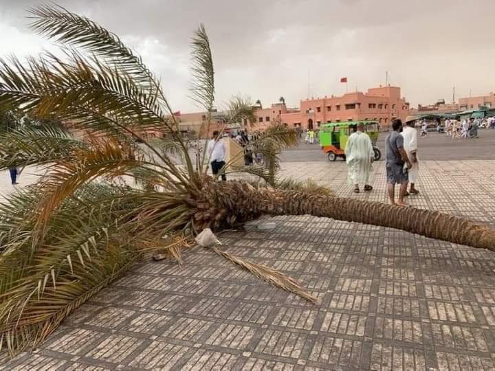 شهدت مدينة مراكش، يوم أمس الأربعاء، عاصفة رياح عاتية؛ الأمر الذي تسبب في انهيار جدران واقتلاع أشجار وسقوط أعمدة كهربائية، وإصابات بين المواطنين.