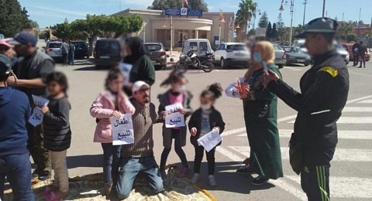 سابقة.. مواطن “يعرض أبنائه للبيع” في احتجاج بمدينة بركان (صورة)