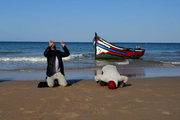 سجود “حراكة” مغاربة بعد وصولهم إلى إسبانيا بعد نجاتهم من الموت (صور)